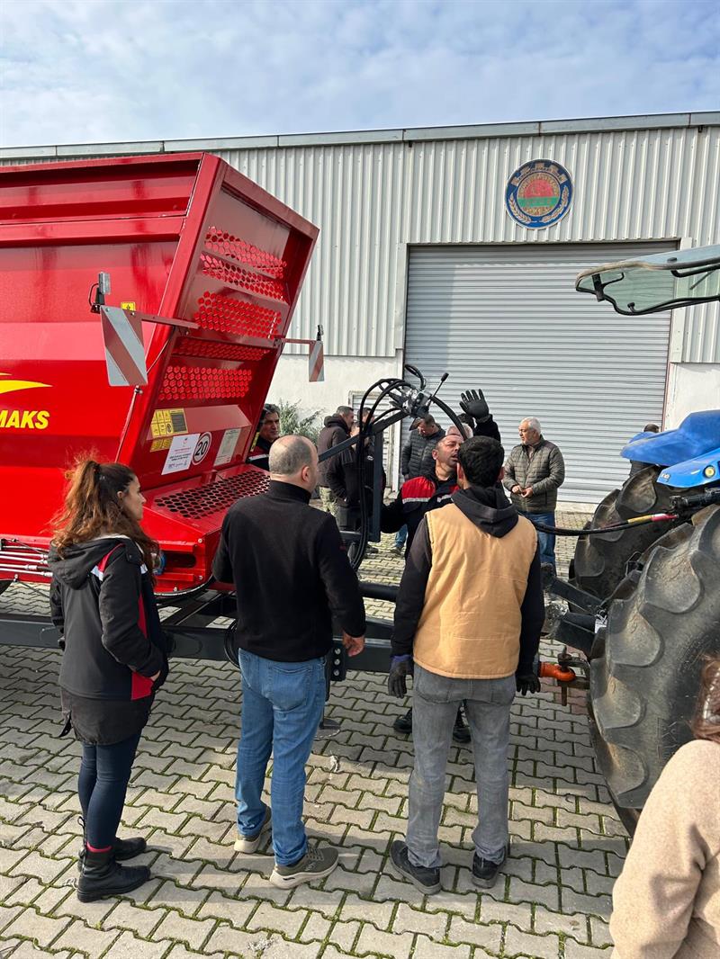 Daha sonra firma yetkilileri tarafından makineyi kullanacak olan kişilere yönelik olarak 03.12.2025 tarihinde Menemen İlçesinde, 05.12.2025 tarihinde Tire ve Kiraz İlçelerinde Katı Gübre Dağıtma Makinalarının teorik ve pratik olarak eğitimleri düzenlenmiştir.